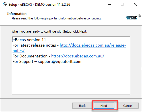 eBECAS/EDMISS is installed on your Windows device using an installer that you can download from a url provided by your administrator or by Equator IT.