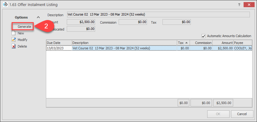 You can also double click on the instalment.Click on Generate from the Options panel.
