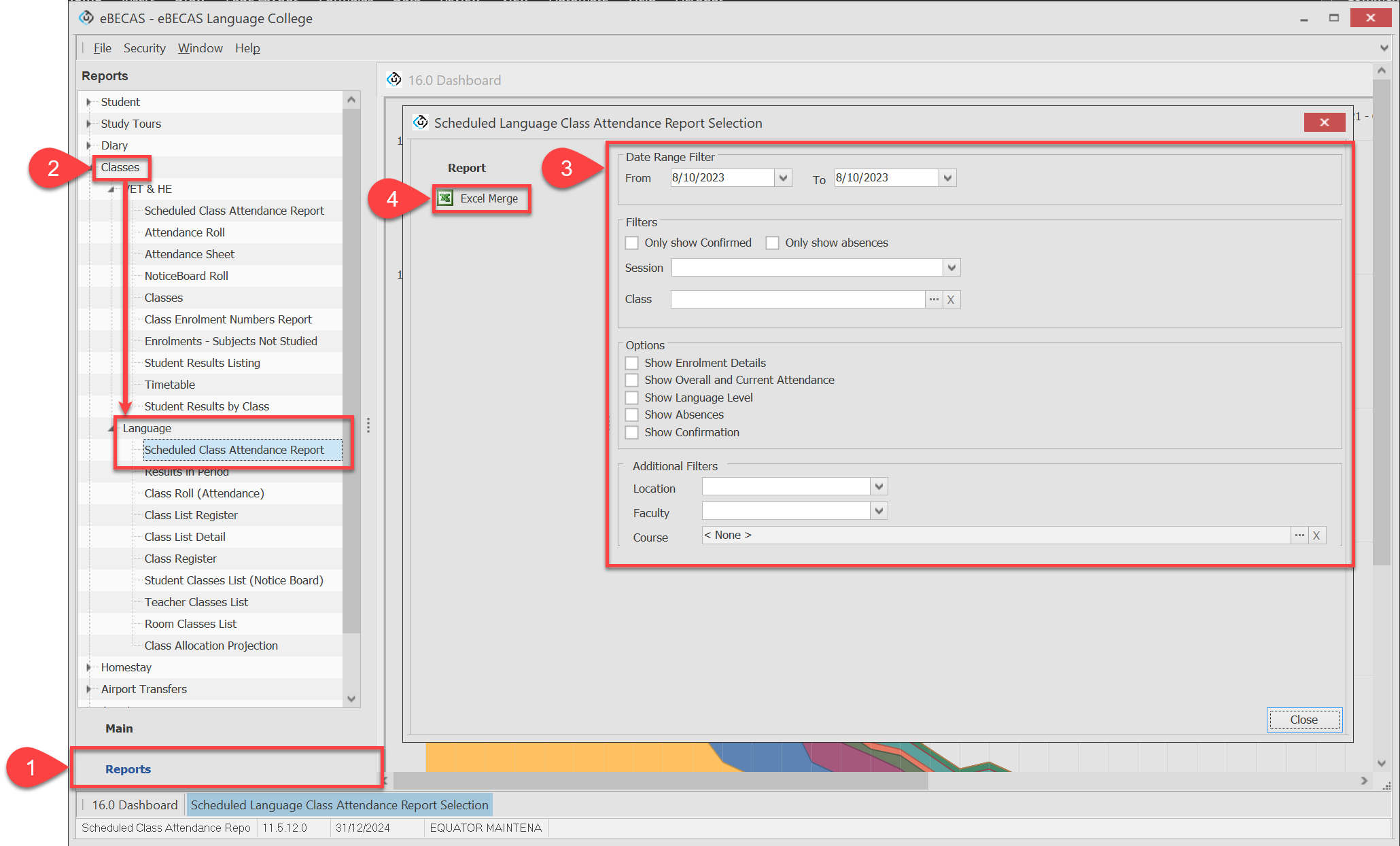 Click Classes > Languages > Scheduled Class Attendance Report