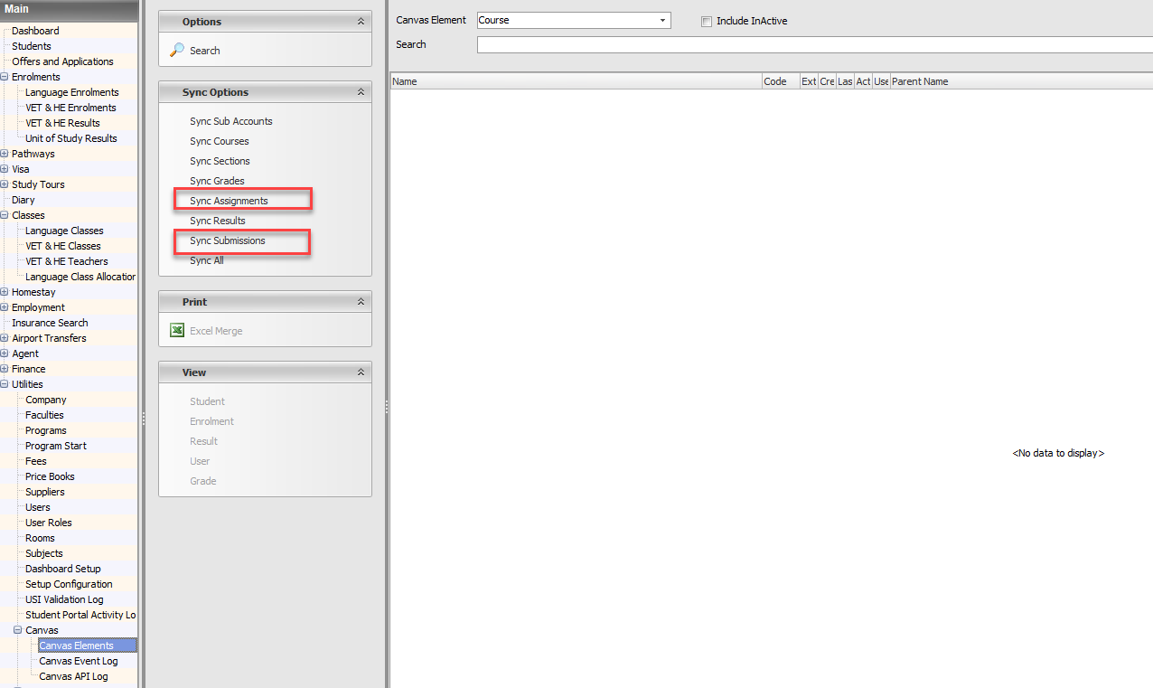 From the Sync Options side panel, click on Sync Assignments. This will import the assignments from Canvas.