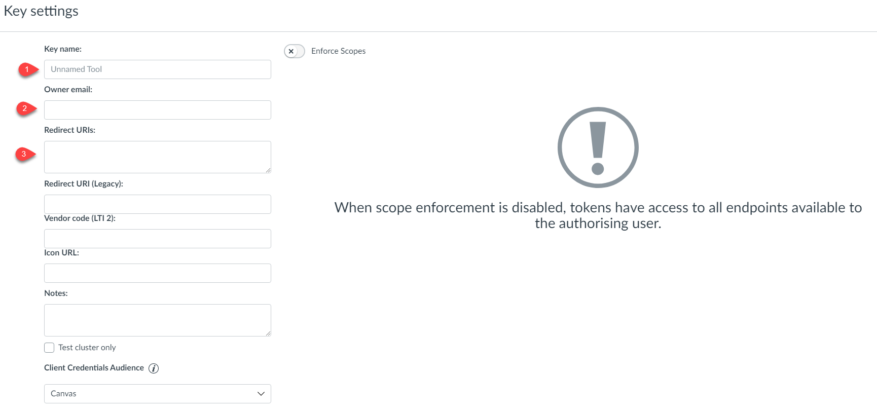 Redirect URL: This field is pre-populated for you and it must match the 'Redirect Url' in the Canvas Developer Key.