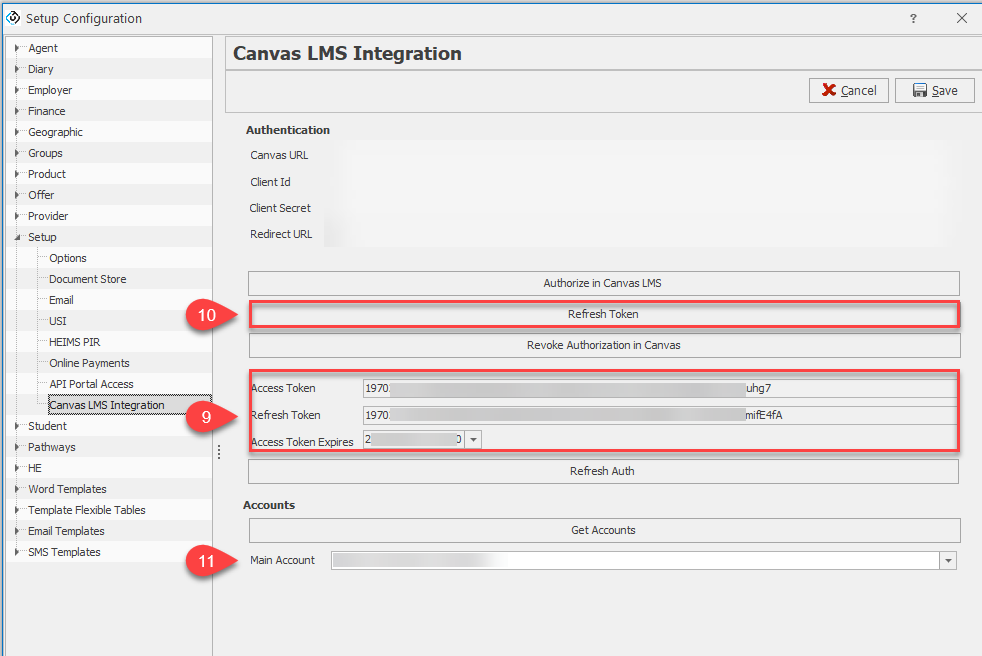 If the connection was successful, click on the button 'Refresh Auth' and you should see some values populated in the fields 'Access Token' and 'Refresh Token'. These values are used by eBECAS/EDMISS to connect to your Canvas instance.