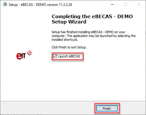 When the installation is completed, choose if you want to launch eBECAS/EDMISS and click on Finish.