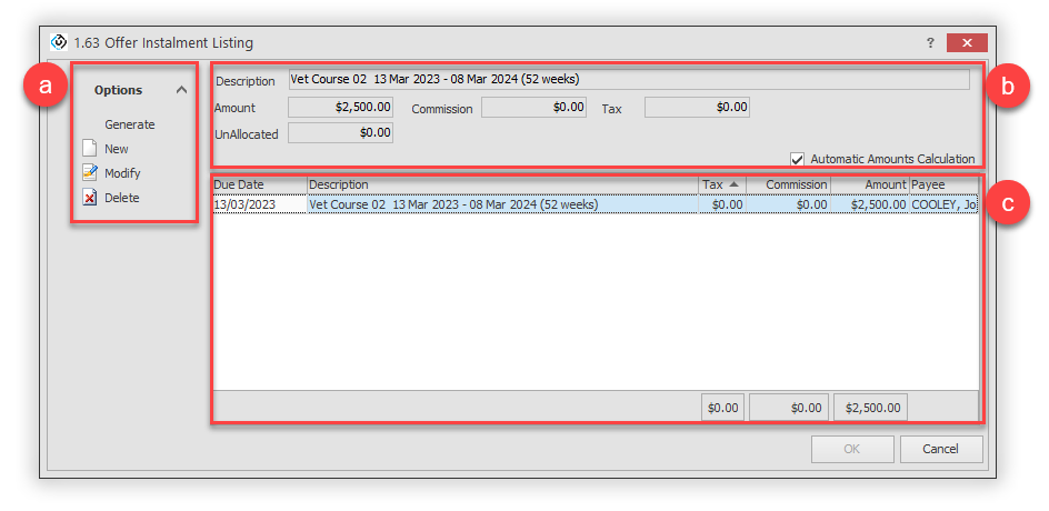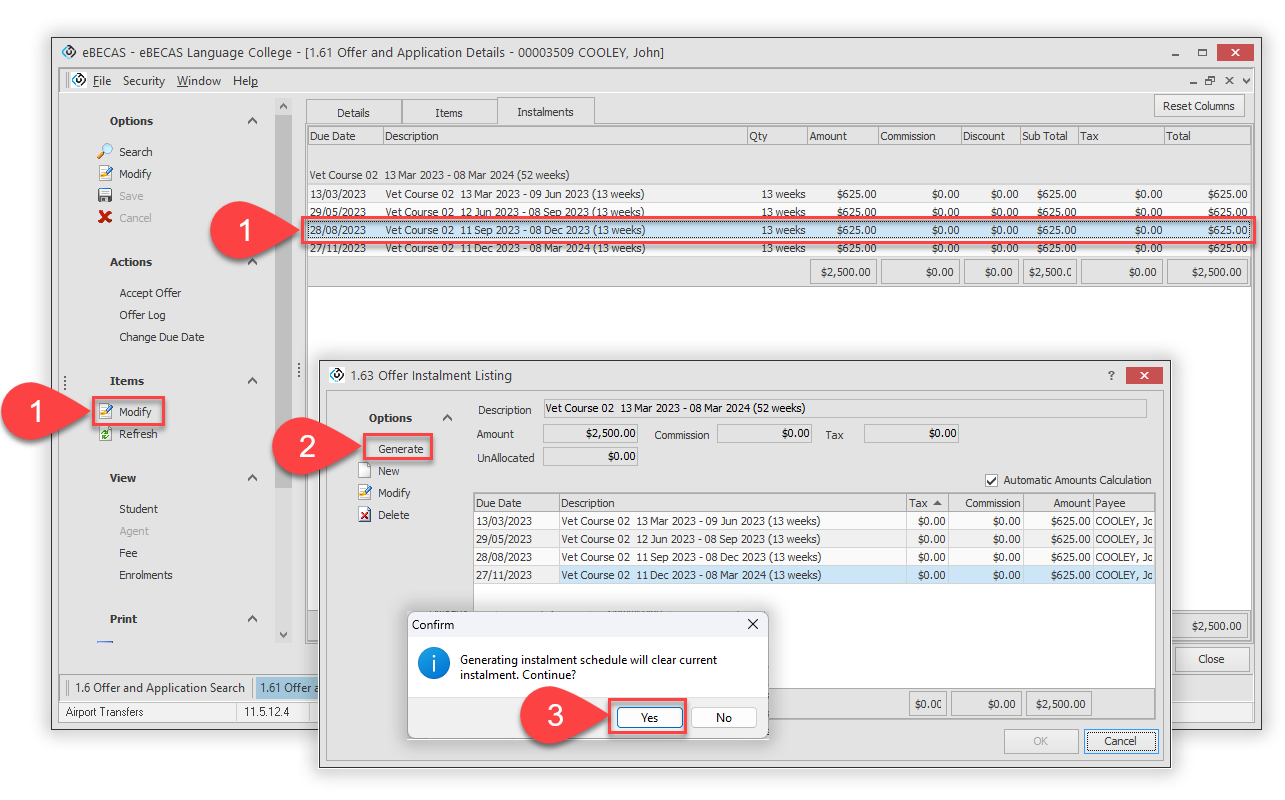 eBECAS/EDMISS offers an easy-to-use Instalment Generator for creating instalment plans.