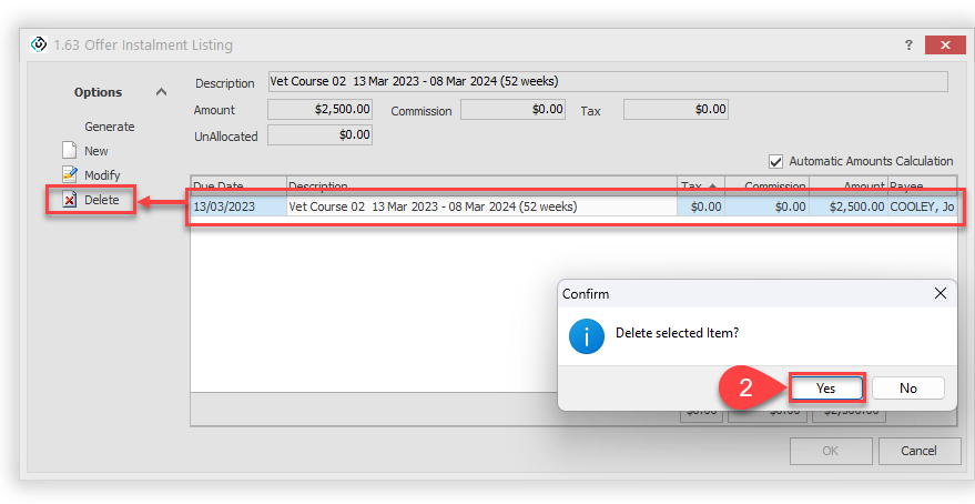 (Optional) You can delete an instalment by selecting the instalment and then clicking on Delete.