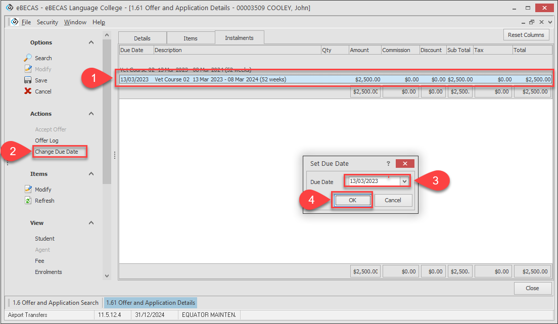 Modify Instalment Due Date