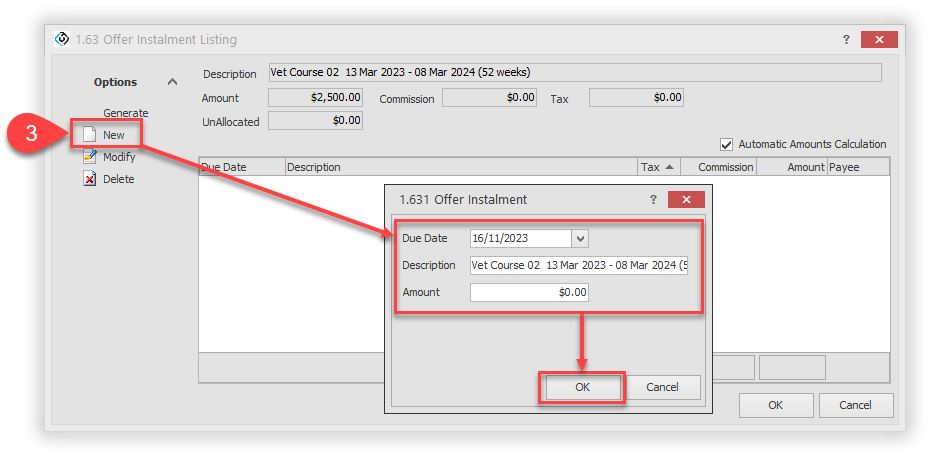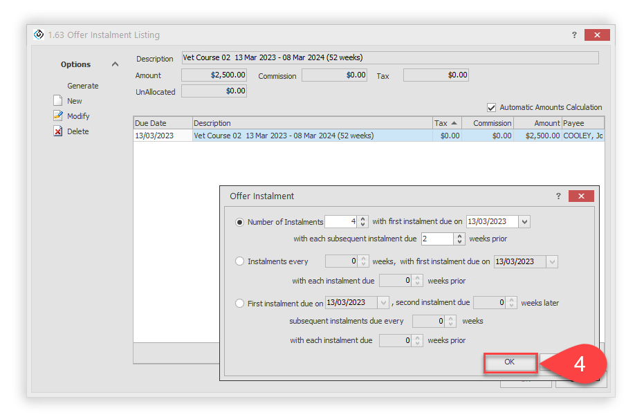 Once all instalments are created, click on OK to save.