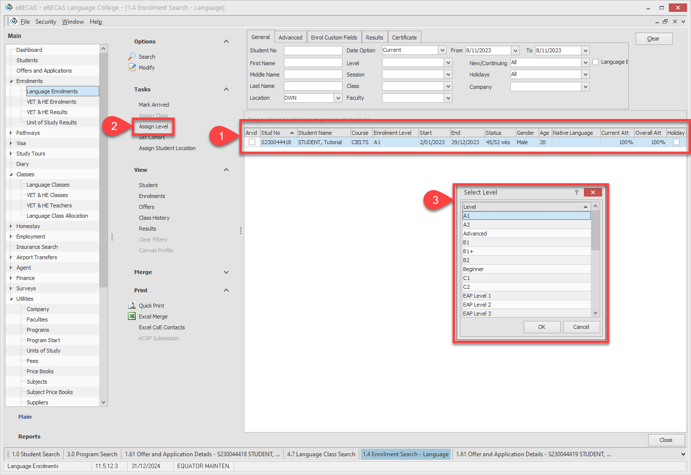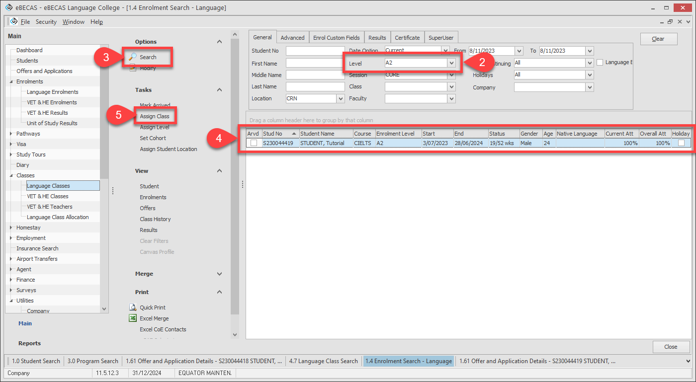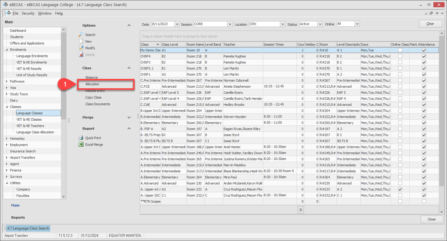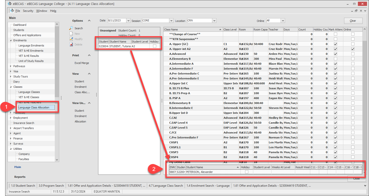 Use the Level filter to filter the students to allocate base on the Enrolment Language Level.