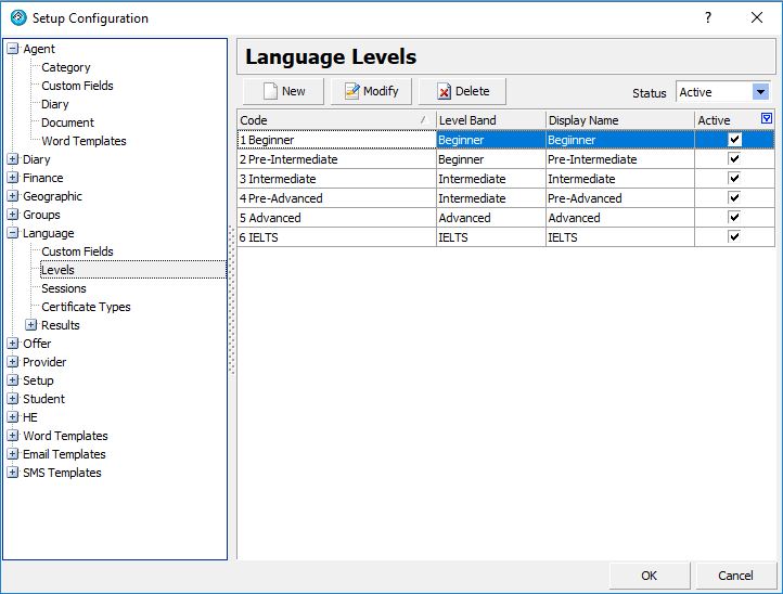 Add/Modify/Delete Language Levels.