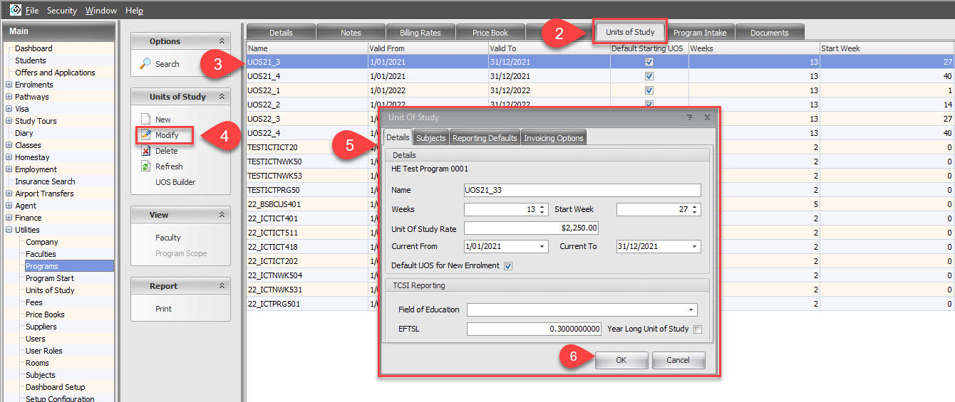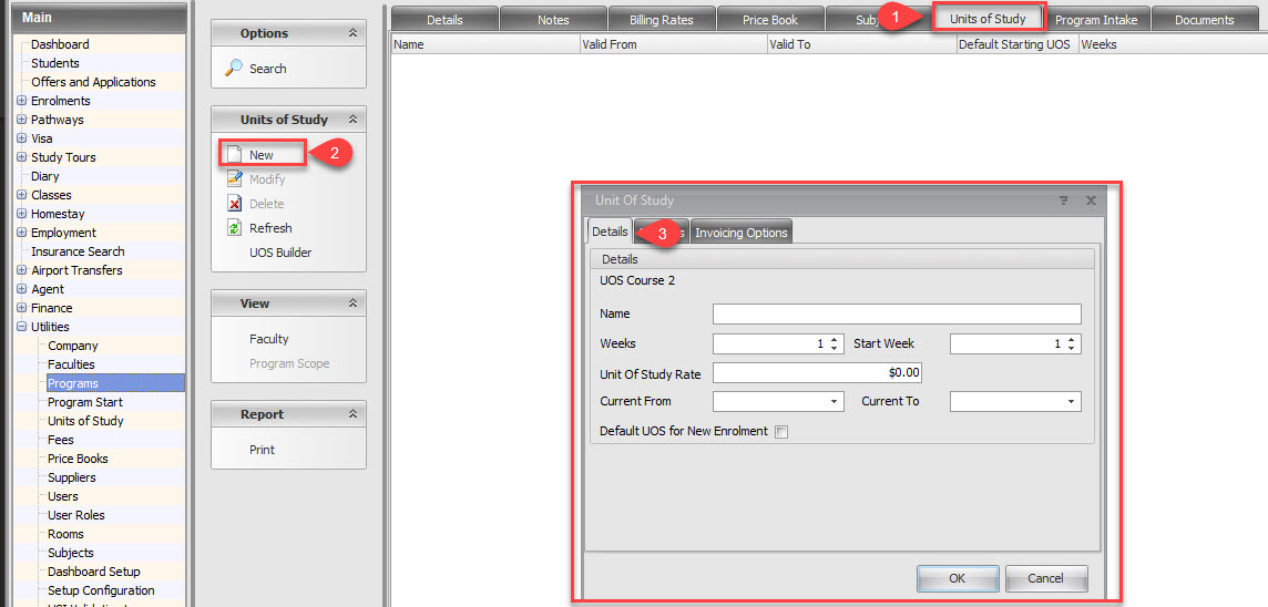 Go to Utilities > Units of Study
