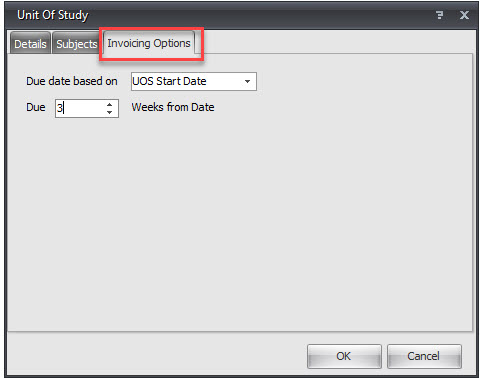 Use subject Cost for UOS cost: If selected, the cost for the UOS will be the total amount of the cost for the subjects that are part of the UOS.