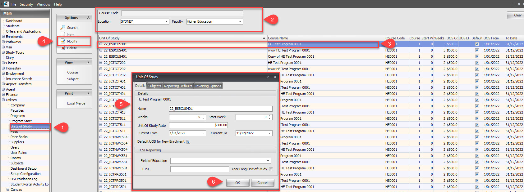 Note: Although you can modify Units of Study, it is important to note that these changes will not impact offers/enrolments/results that have already been created with those UOSs.