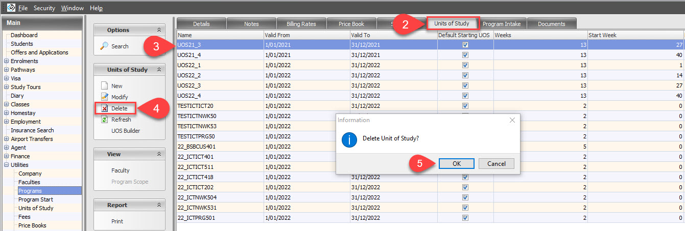 Follow these steps to delete a Unit of Study: