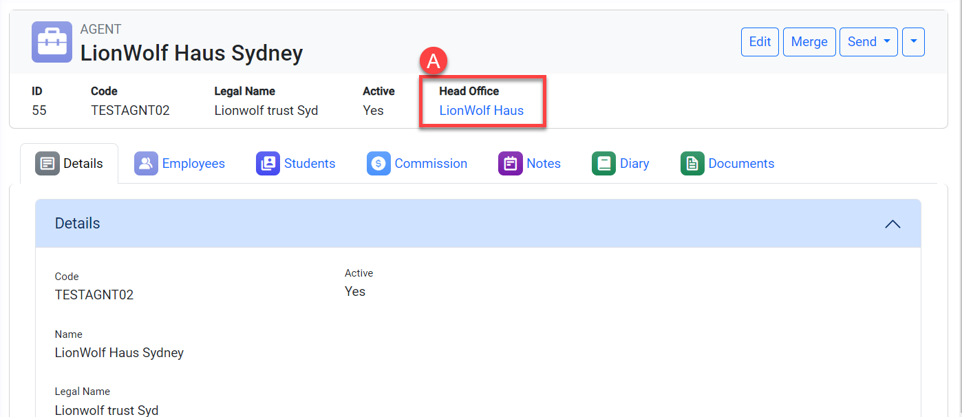 A. Head Office in the Header: Only visible if the agent is a Branch Office (it has a head office).