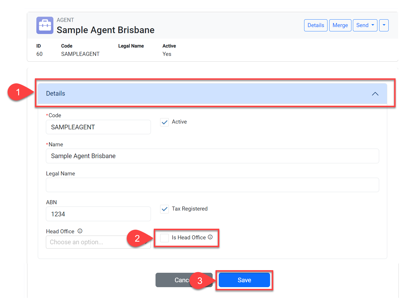Select the Is Head Office option.