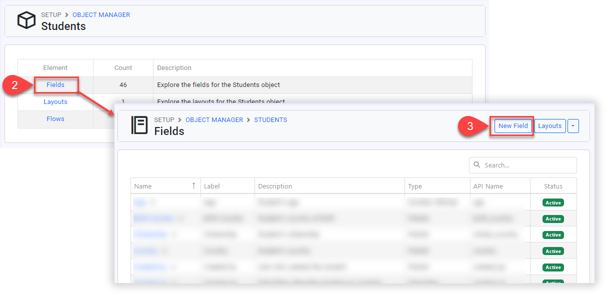 From the Object Manager, locate the Object that you want to create the custom field for.