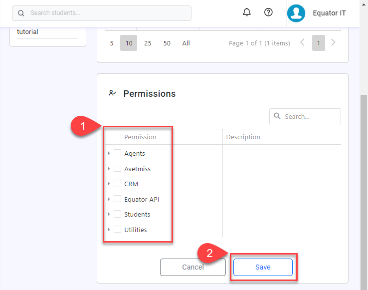 On the Role page, Select / Unselect the permission(s) you intend to apply / remove from the role.