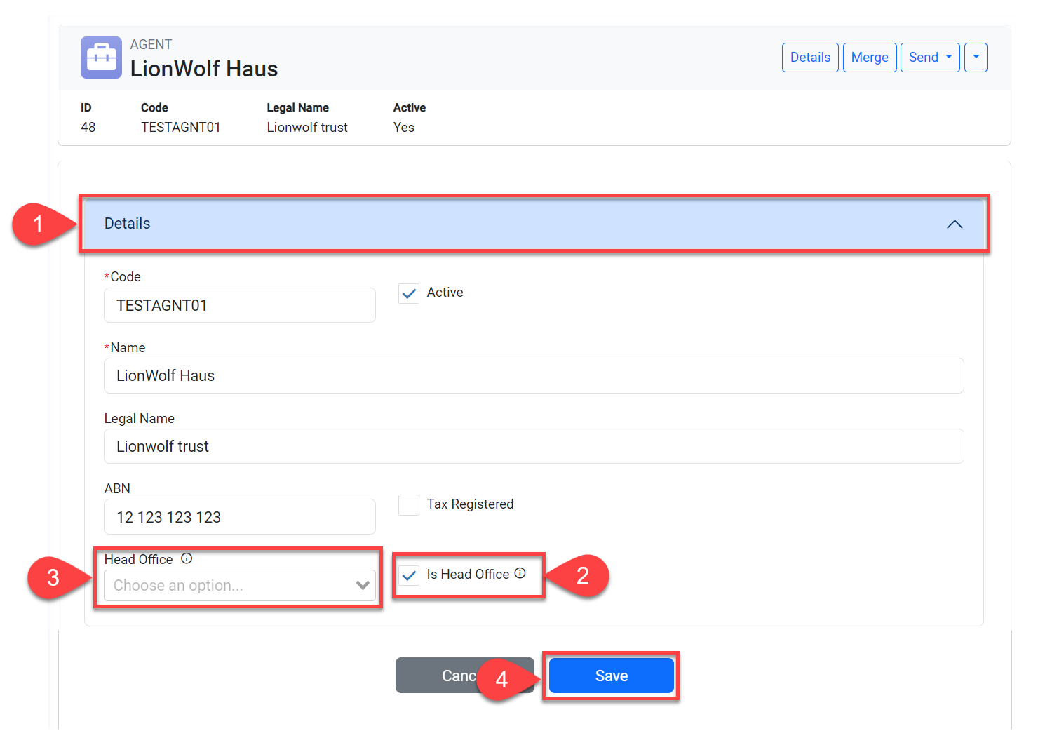 Select the Is Head Office option.