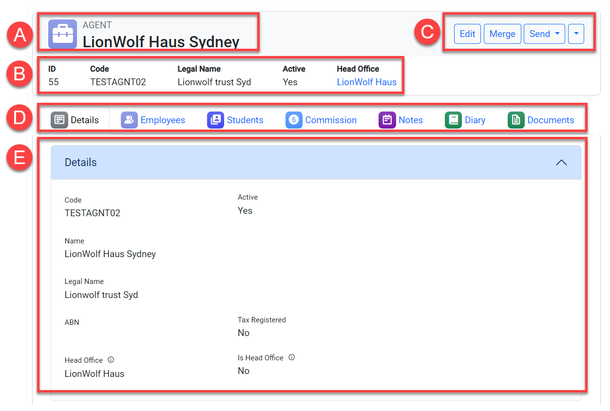 B. Agent’s Basic Details: This section displays few details of the agent. The content may vary depending on whether it is a Head Office or a Branch Office. For more details, see this article: Branch Offices.