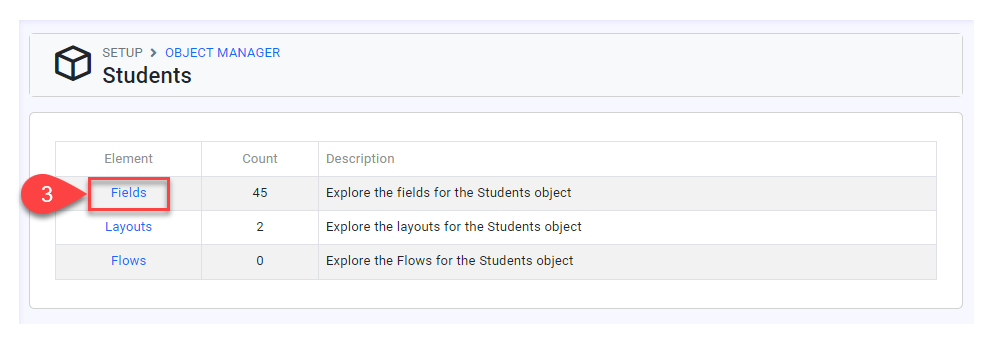 From the Object Manager, locate the Object that you want to create the custom field for.