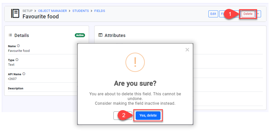 Attributes can vary depends on the type of the field. The field label is the actual text displayed on the forms.Click Create.