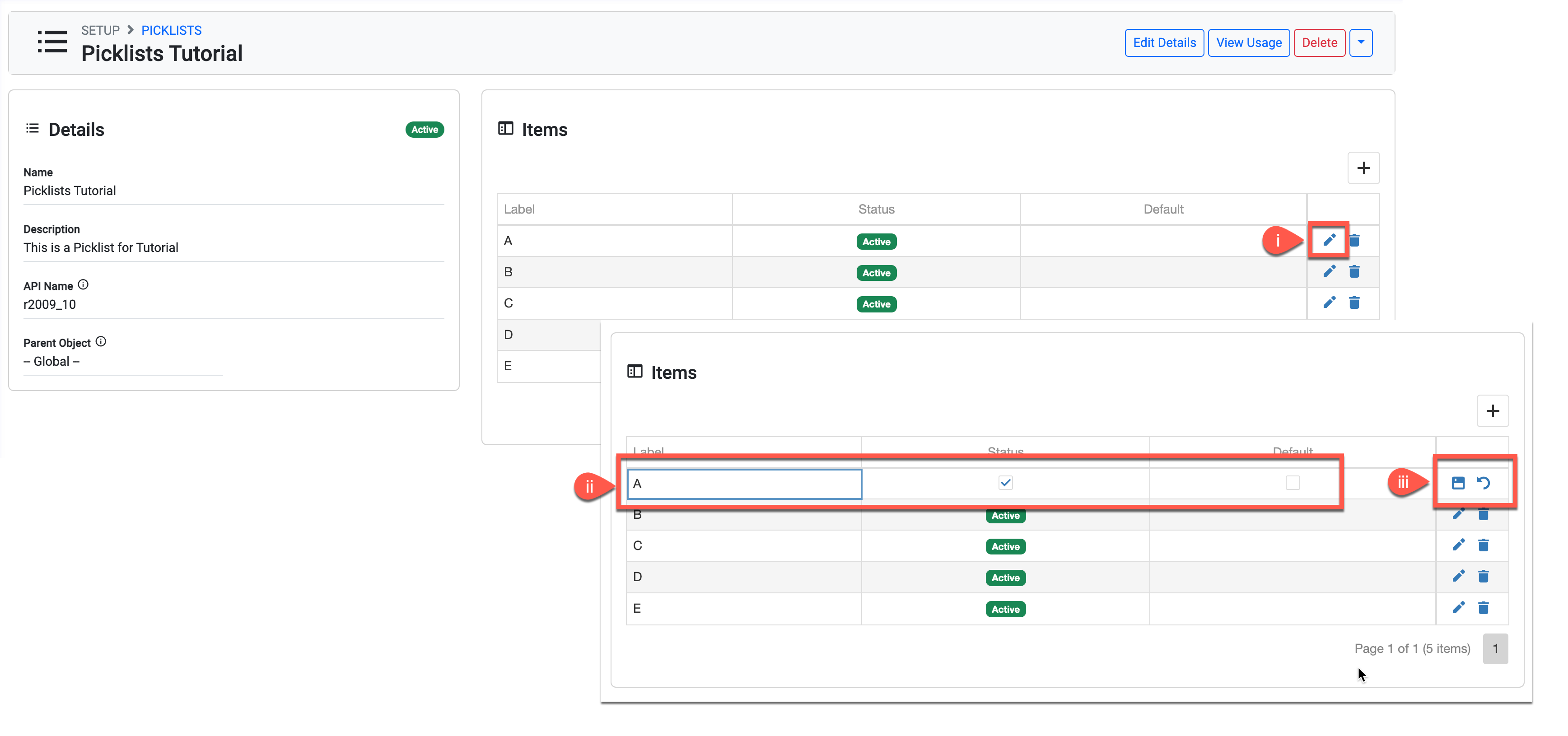 Some picklists are system-protected and will not allow you to change any details or values. Some other lists do not allow you to change the details but they allow you to modify the values.