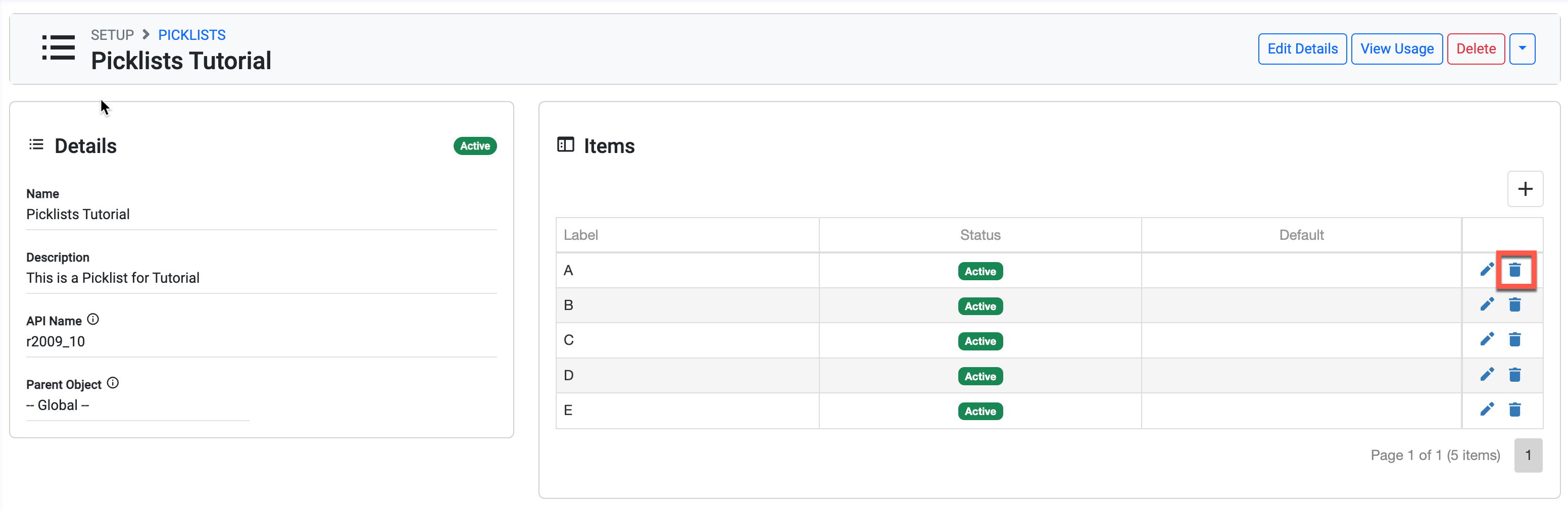 Click the Picklist that you’d like to delete.