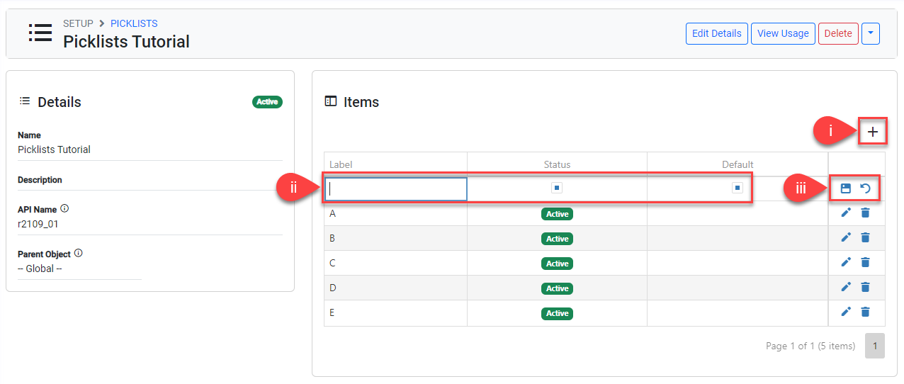 Enter the details for the New Picklist and enter the Values accordingly.