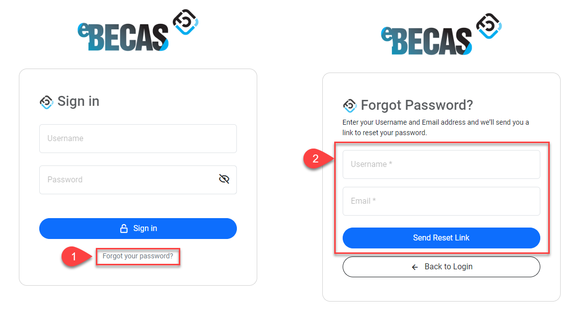 Enter your registered email address and username (both are required). Then click on Send Reset Link.