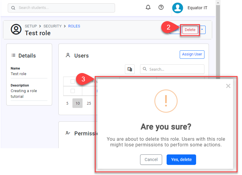 This action will permanently delete the Role. Please ensure that this task is intended before confirming.