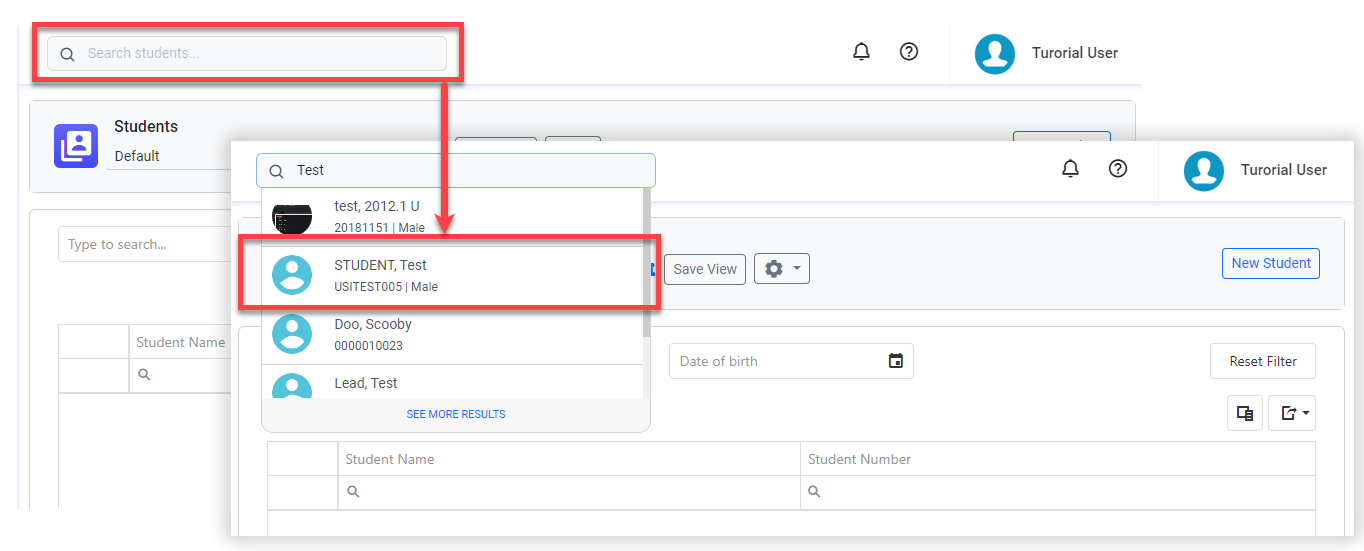If you're uncertain about the student's basic details or if you're looking for multiple students or advanced filtering, you can use Students Search View.