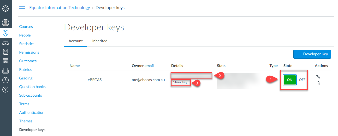 Redirect URIs: This value will be provided by Equator IT. You can also get this value from the Canvas integration view in eBECAS/EDMISS (refer to the section below 'eBECAS/EDMISS Setup').