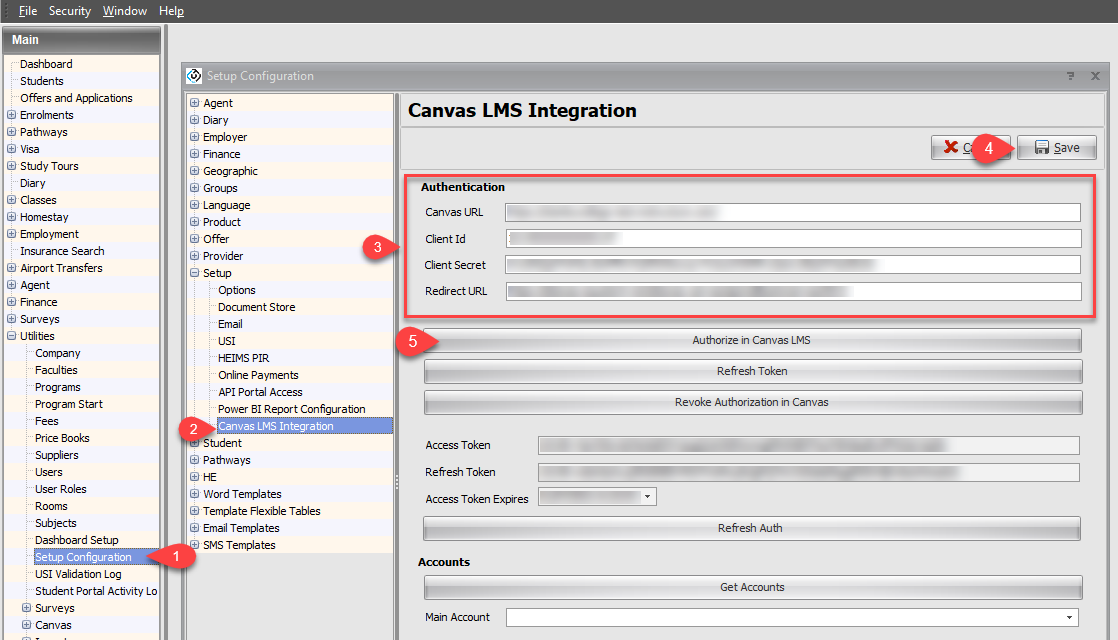 From the side menu, on the Setup Configuration window, click on Setup >Canvas LMS Integration