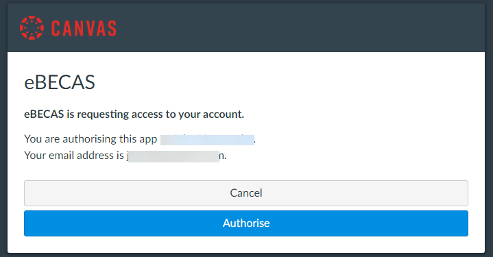 Click on 'Authorise' to authorise eBECAS to connect to your Canvas instance.
